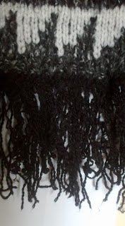 Az elképzelt hosszúságnál kicsit hosszabbra vágjuk a fonalat, láncszemsort horgolunk belőle, ecetes vízbe rakjuk 20-30 percre, megszárítjuk, visszabontjuk, így göndör marad, és ráhurkoljuk a pulcsira.