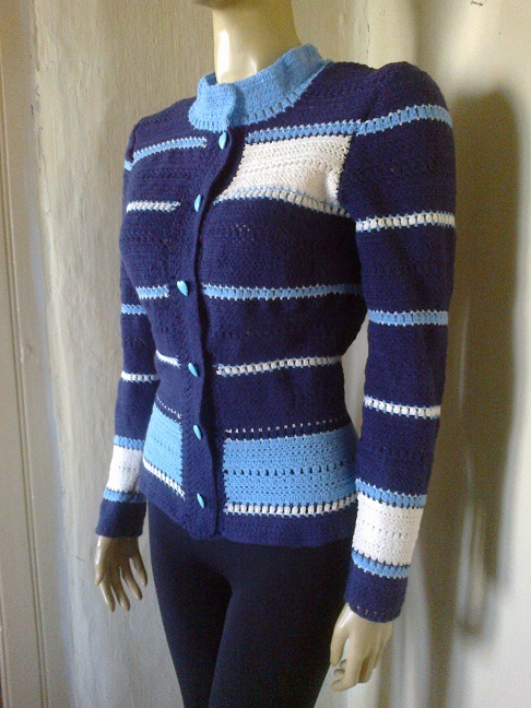 Könnyű elegáns sötétkék horgolt kardigán