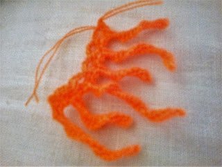 Az elképzelt hosszúságra horgolunk láncszemsort, majd elindulunk rajta vissza átölelve sűrűn rövid pálcát horgolva, — az alap egyenes rojt, ehhez annyi rövid pálcát horgolunk amennyi láncszemet horgoltunk, hullámokhoz többet, spirálhoz dupla annyi rövid pálcát,– egy rövid pálcával kapcsoljuk a kezdő sorhoz.
