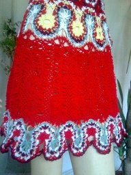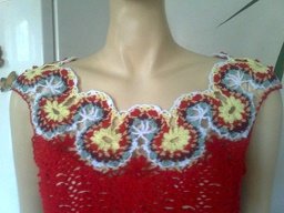 Ezt a mintát horgolhatjuk nagyobb, vastagabb változatban, több színes sorral, lehet ruha, tunika dísze nyakkivágáson, derékon, aljon…