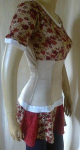 Ahogy voltak már nem hordtam, de mindig szem előtt voltak, így a párosításuk napról napra tökéletesedtek egy új tunika létrehozatalára. Ez lett az eredmény, csipke, virágos és sztreccs szatén topok felhasználásával.