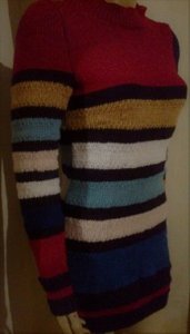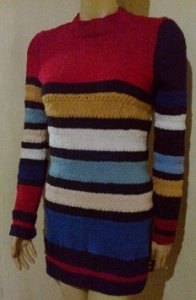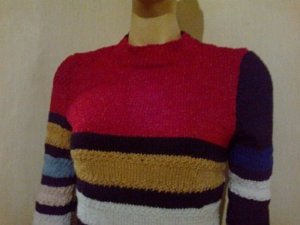 Színes csíkok harmonikus összhangban volt az elképzelésem kötött pulcsira, megtaláltam hozzá a színeket, melyek segítik egymás ragyogását, a fekete, a kék, a piros, a fehér, a rózsaszín.