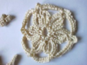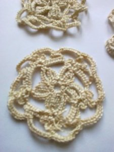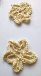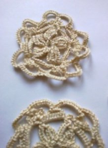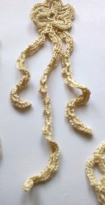 a láncszemes íveket átölelve 6 rövid pálca, 6 láncszem csatlakoztatva a 6 rövid pálca első pálcájára, visszafordulva 6 rövid pálca a 6 láncszemre, a láncszem, a következő 12 láncszemes ívre kapcsolva ezt ismételjük