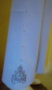Újjávarázsolt nadrág ezüst színű szegeccsel, barokkos mintaként rávarrt ezüst színű zsinórral, egy régi nadrág akár hetente más, más hozzáadásával, cserélésével ……… mint megunhatatlan örök darab lehet.
